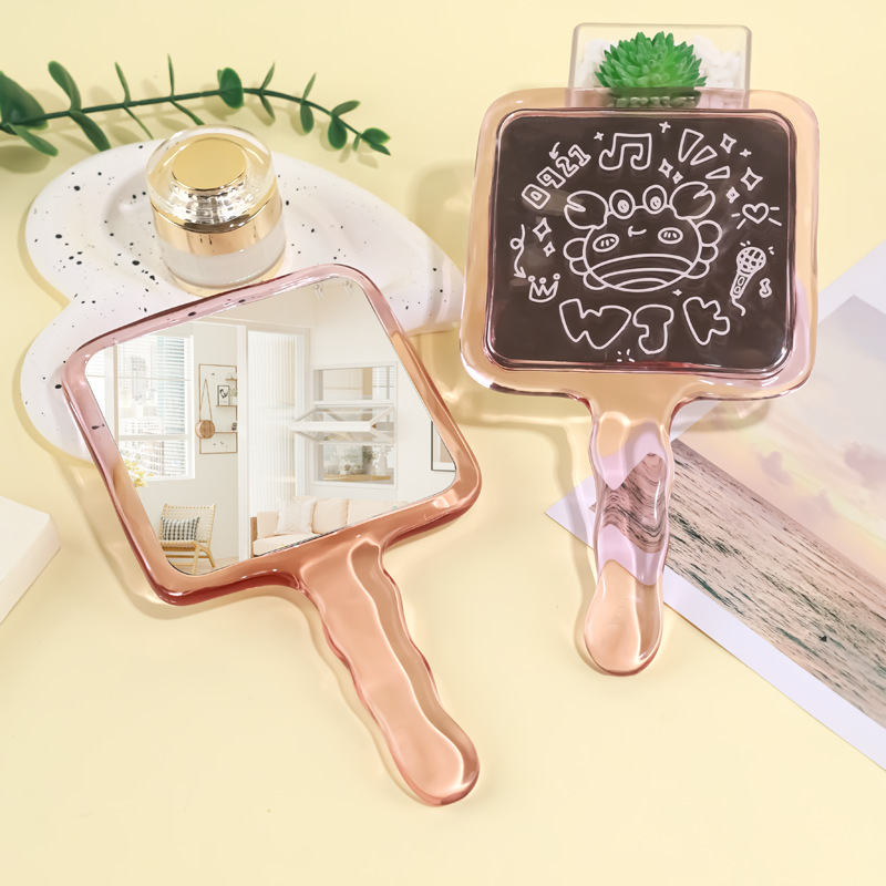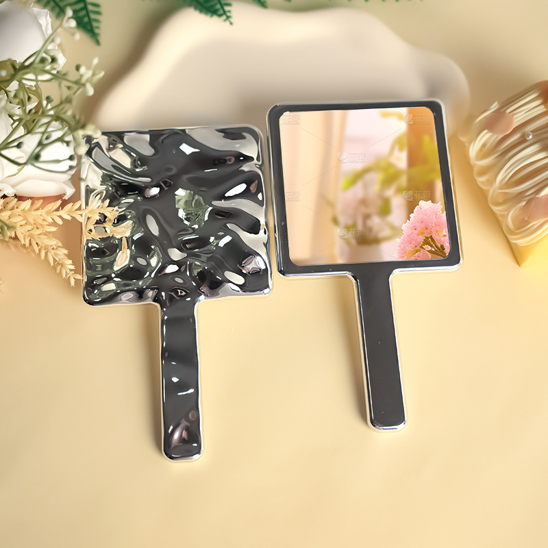新型の電気めっきの水の波紋の方鏡の手持ちの鏡は小さい鏡を携帯してロゴの化粧鏡の女子学生の携帯鏡を印刷することができます。