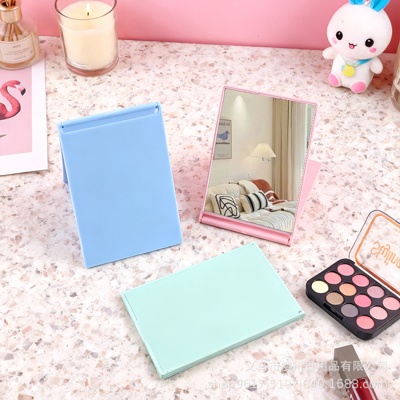 三面折りたたみポータブル収纳可能化粧镜デスクトップ可爱い化粧リメイクミラーパターン印刷可能