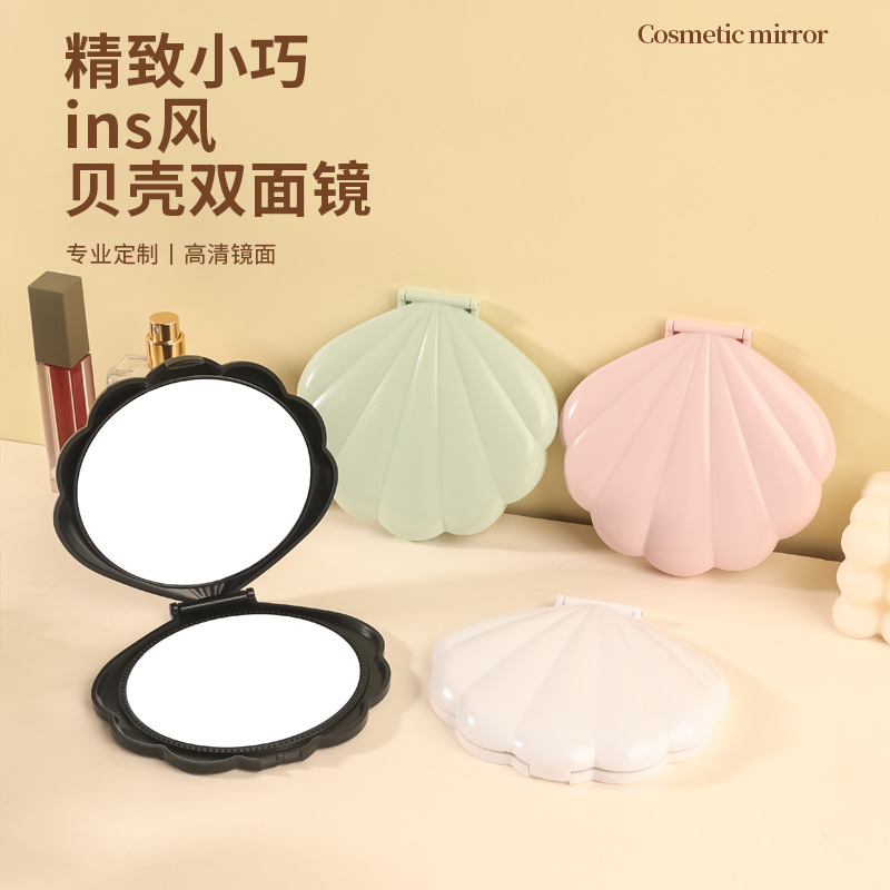 新型貝殻カバー両面化粧鏡少女バッグ収納化粧鏡一面拡大創意広告鏡