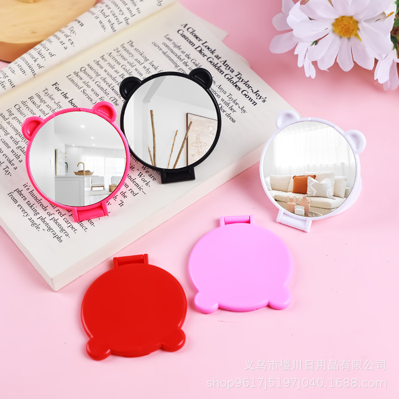 人気商品 ミニベア フリップミラー 可愛くて便利なプラスチック製ハンドミラー 持ち運びミラー 折りたたみ式化粧鏡