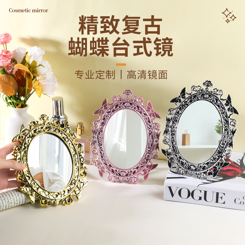 新型卓上レトロメッキ鏡デスクトップ化粧鏡蝶精致ハイエンド化粧鏡メーカー卸売り鏡