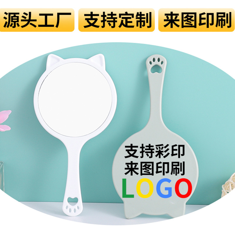 新しいアイデア貝殻手持ち鏡プラスチック化粧鏡少女化粧鏡はロゴを印刷できます。