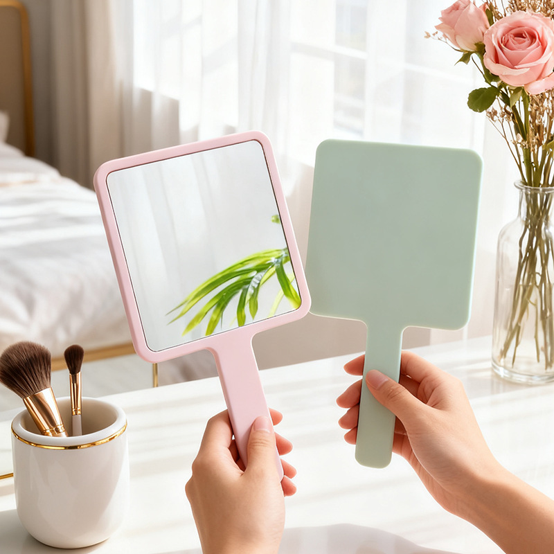 方形化粧鏡 小型鏡 携帯用美容鏡 ロゴ印刷可能 ハンドル付き鏡 卸売 広告ギフト 方形鏡