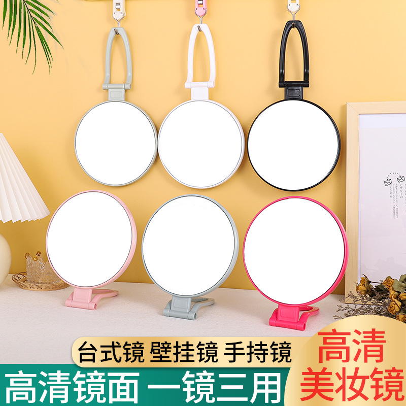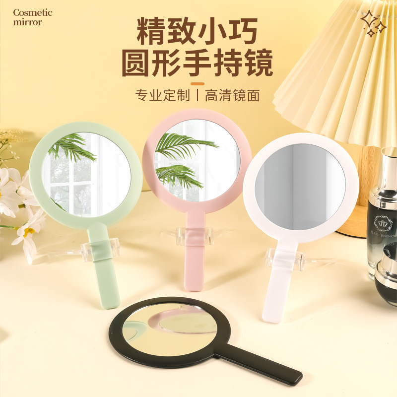 デスクトップ化粧鏡ポータブル折りたたみミラーデスクトップ円形プリンセスミラーファッション両面ミラープラスチックハンドルミラー卸売