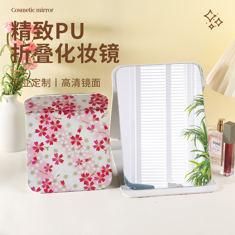 Pu皮ミニ鏡折り畳み化粧鏡携帯収納女子メイク鏡DIY鏡メーカー卸売り