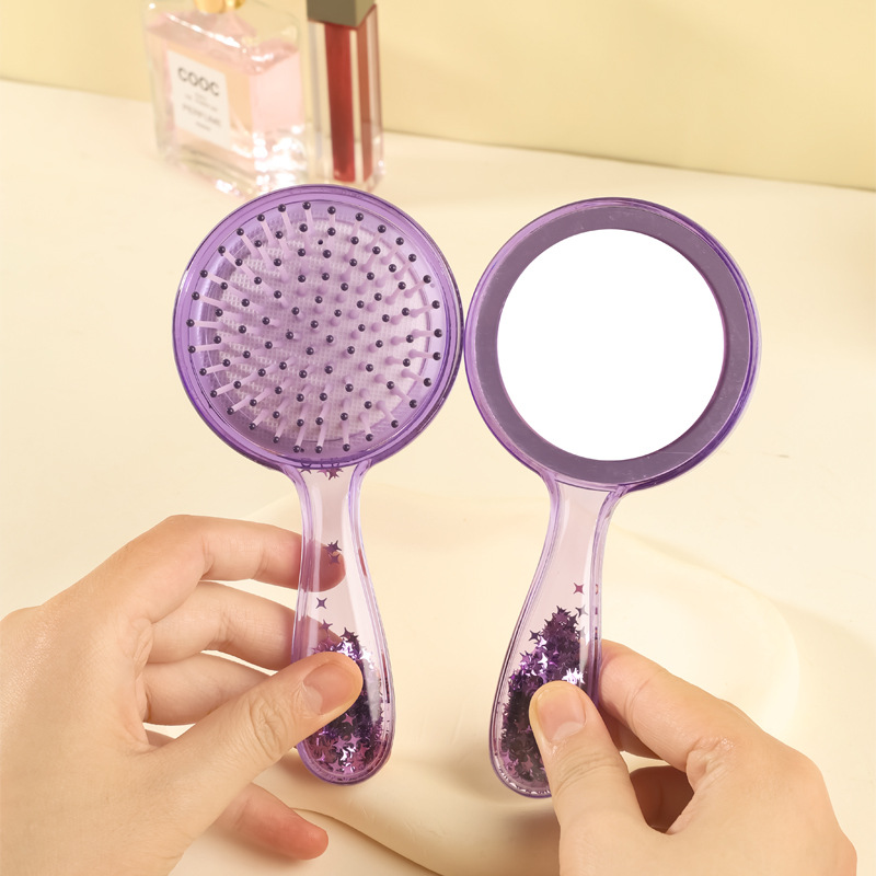 電気商の熱い販売の新型の鏡は紫色のフラッシュの粉の鏡のエアマットの櫛の化粧の鏡の小さい櫛のマッサージの櫛を使って携帯します。