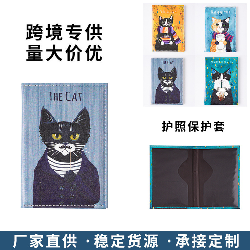 かわいい子猫パスポートカバーシンプルな漫画 ID カードホルダーパスポートホルダーチケット銀行カードパスポートバッグロゴ付き