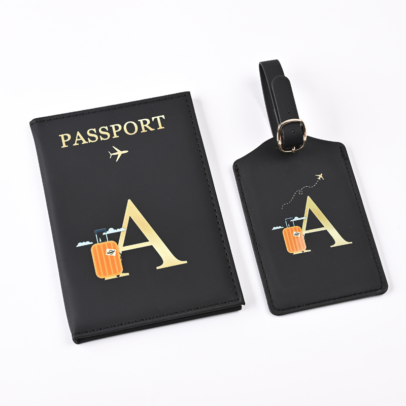 新型箔押しデザインアルファベット旅行パスポートバッグセットアルファベット荷物札ナンバープレート多機能証明書保護