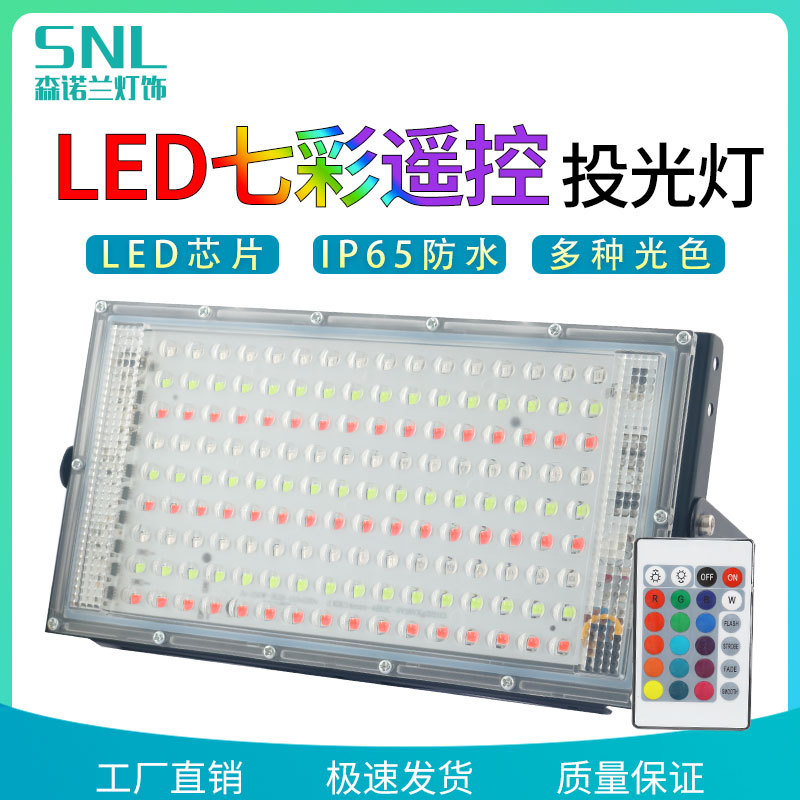 Ledリモコンrgb七彩ヨウ素タングステンランプ投光灯ハイライト防水工場直販クロスボーダー点灯照明