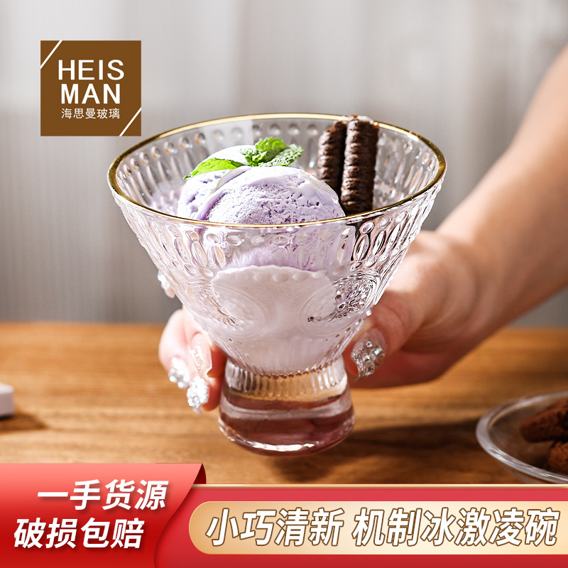 Hysman ゴールデンエッジアイスクリームグラスエンボスひまわり三角カップハンマーパターンカクテルカップジュースドリンクカップ