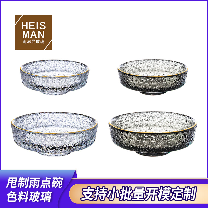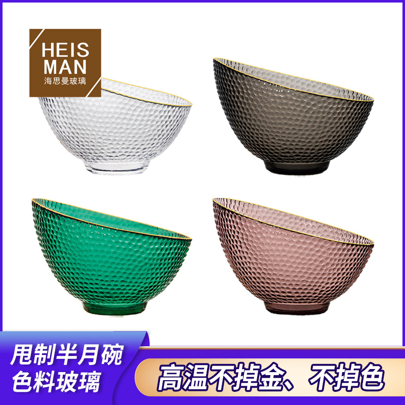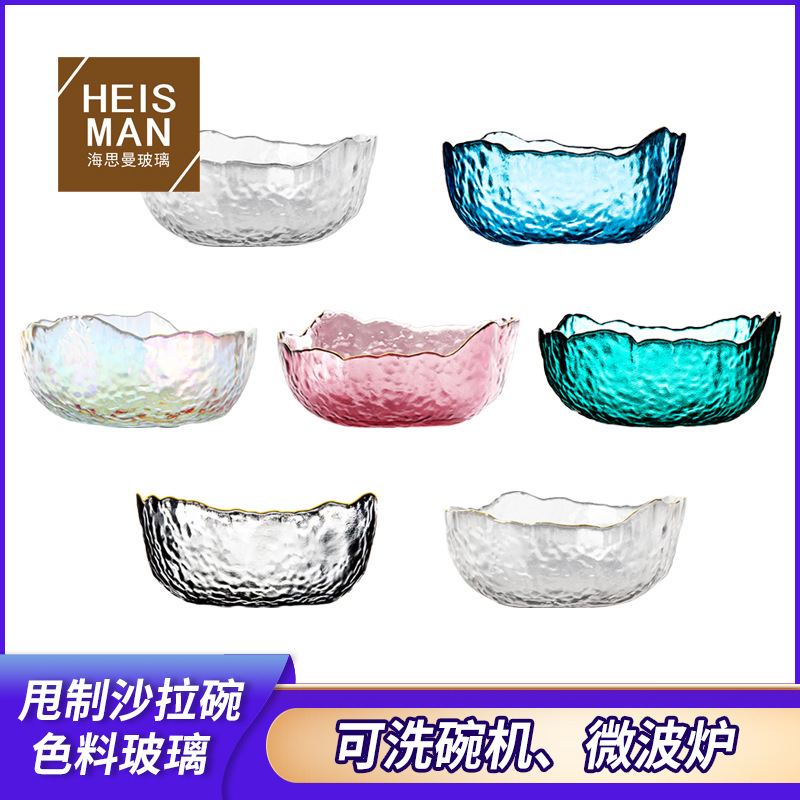 創意斜口ガラス碗ハンマー紋色材サラダ碗家庭用耐熱碗前菜碗スープ碗半月碗カスタマイズ
