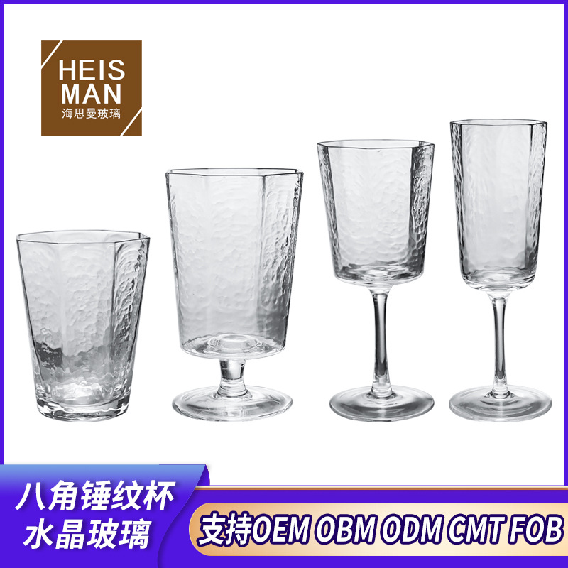 カスタム水晶高足カップハンマー紋八角形ワイングラス透明シャンパンカップジュースカップ正角形ガラスカップ