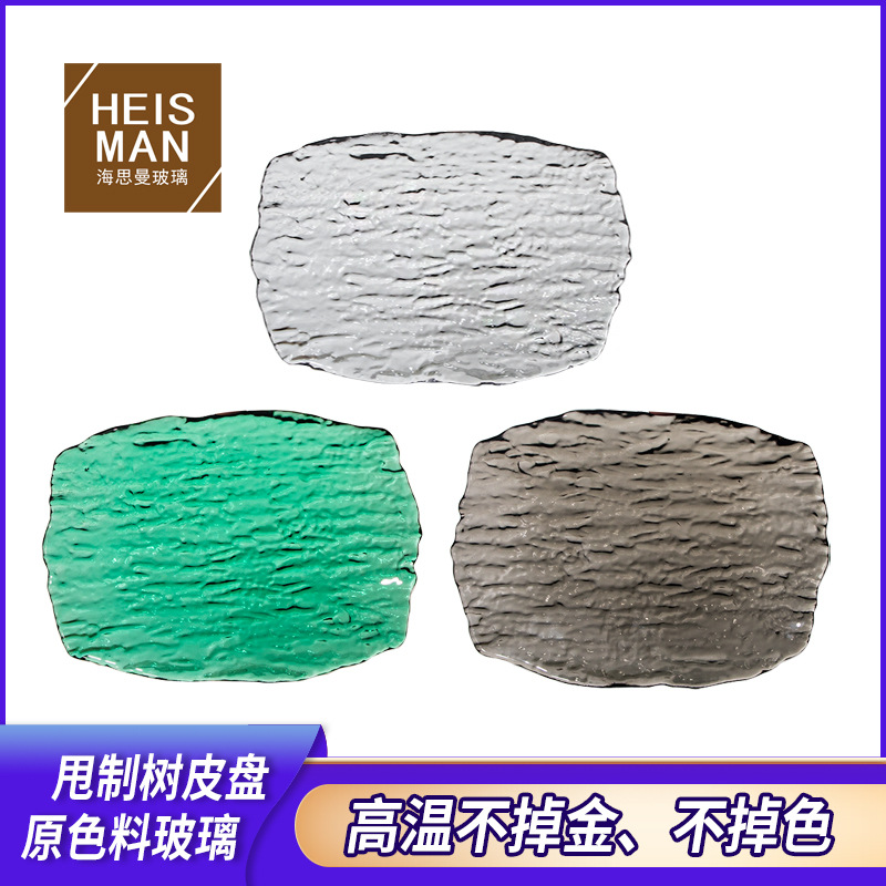 創意的な樹皮の木目のガラスの皿の金の辺の食事の皿の寿司の皿のスナックの皿の不規則な長いストリップの皿は注文します。