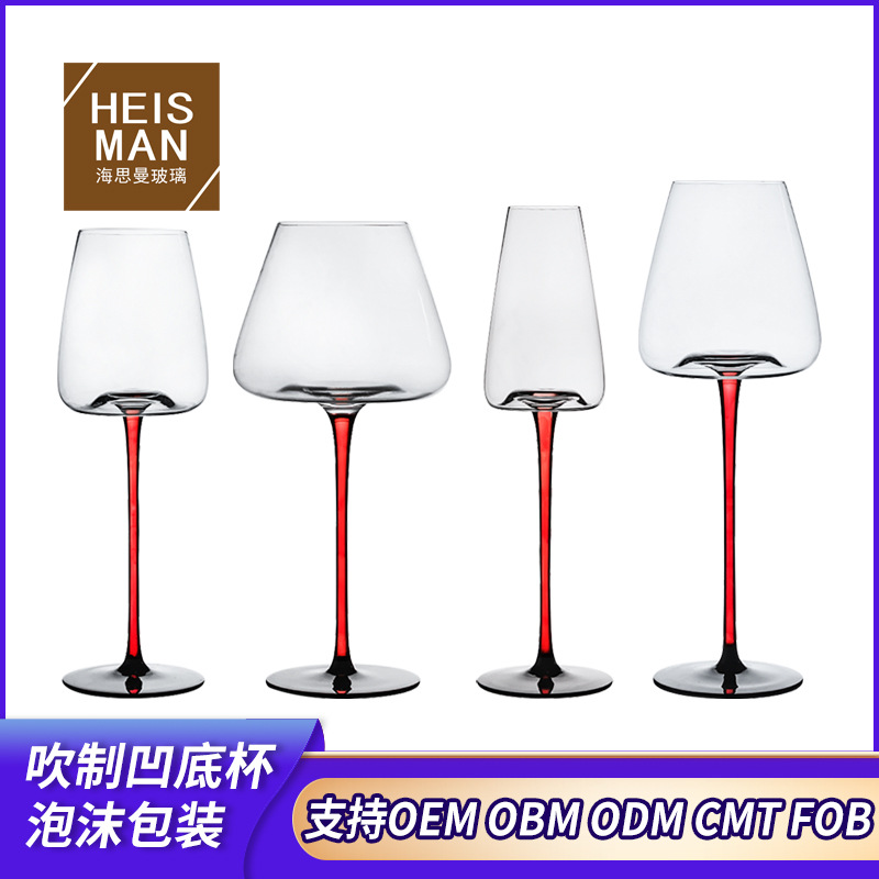 カスタマイズされた一体型ワイングラス水晶ガラス高足カップ吹製超薄赤蝶ネクタイ凹みグラスシャンパンカップ