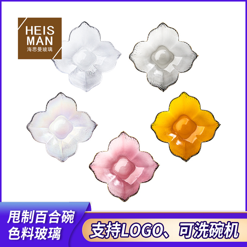 カスタム人工振って花卉ガラスボウルのアイデア百合ボウル家庭用サラダボウルのデザートボウルの果物皿卸売り