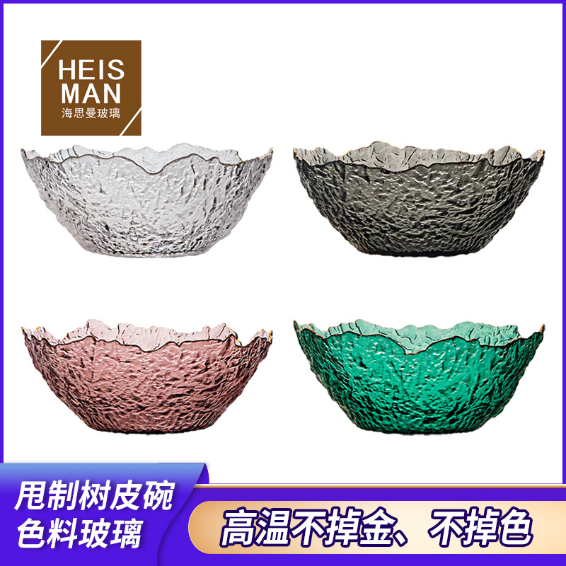 オーダーメイドカラーガラスの碗の創意的な樹皮の木目のサラダの碗は人工的に果物の皿の食事の皿の異形の食器の卸売りを作ります。