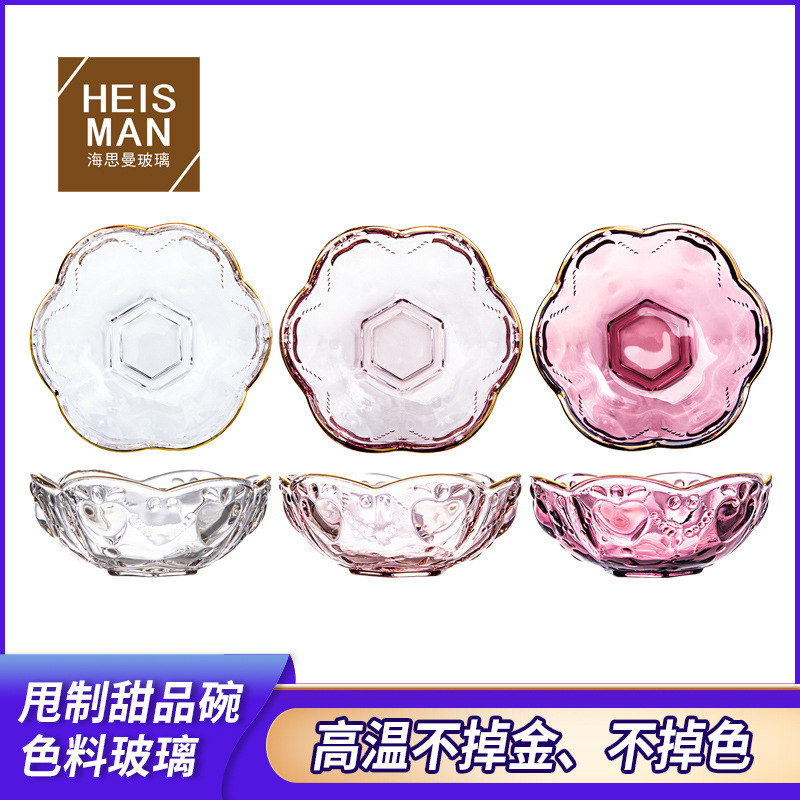 創意的な金辺の桜の碗の浮き彫りのデザートの碗の家庭用ツバメの巣の布丁の碗の小売の軽食の皿のガラスの碗は注文して注文します。