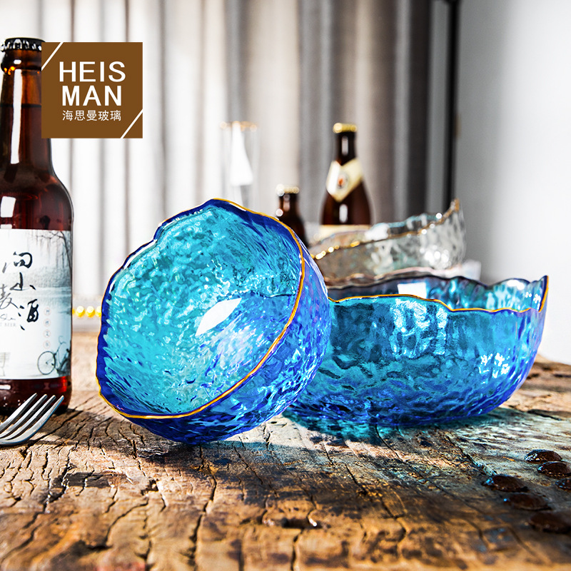 海斯曼槌目金縁サラダボウル 不規則クリスタルガラスボウル 野菜・フルーツプレート 茶洗い 雑貨 ホリデーギフト