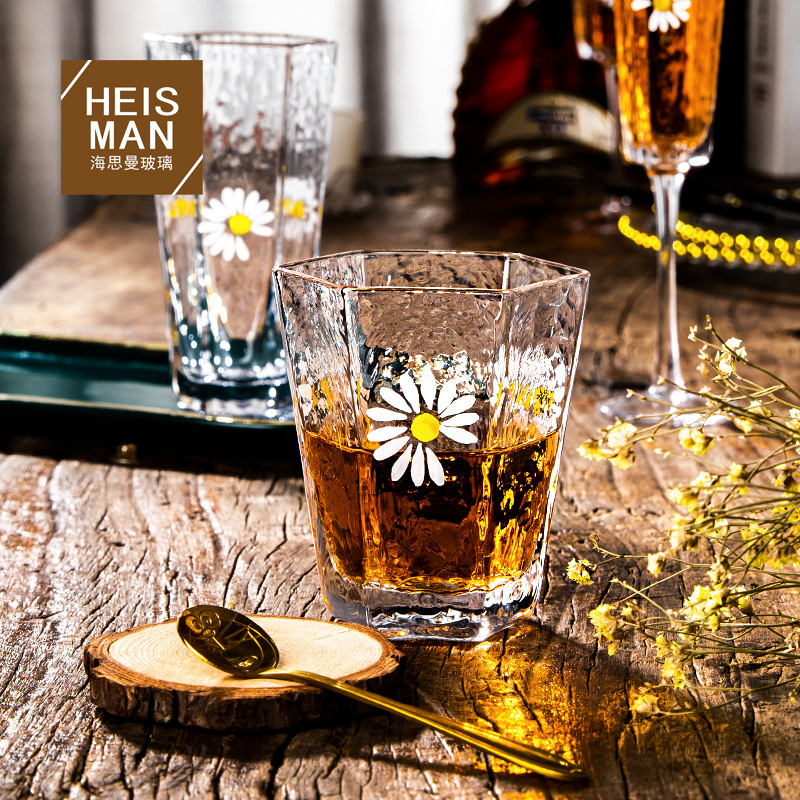 海思曼手描き小菊ハンマーカップ家庭用耐熱カップ金辺グラスジュースカップメーカー卸売り