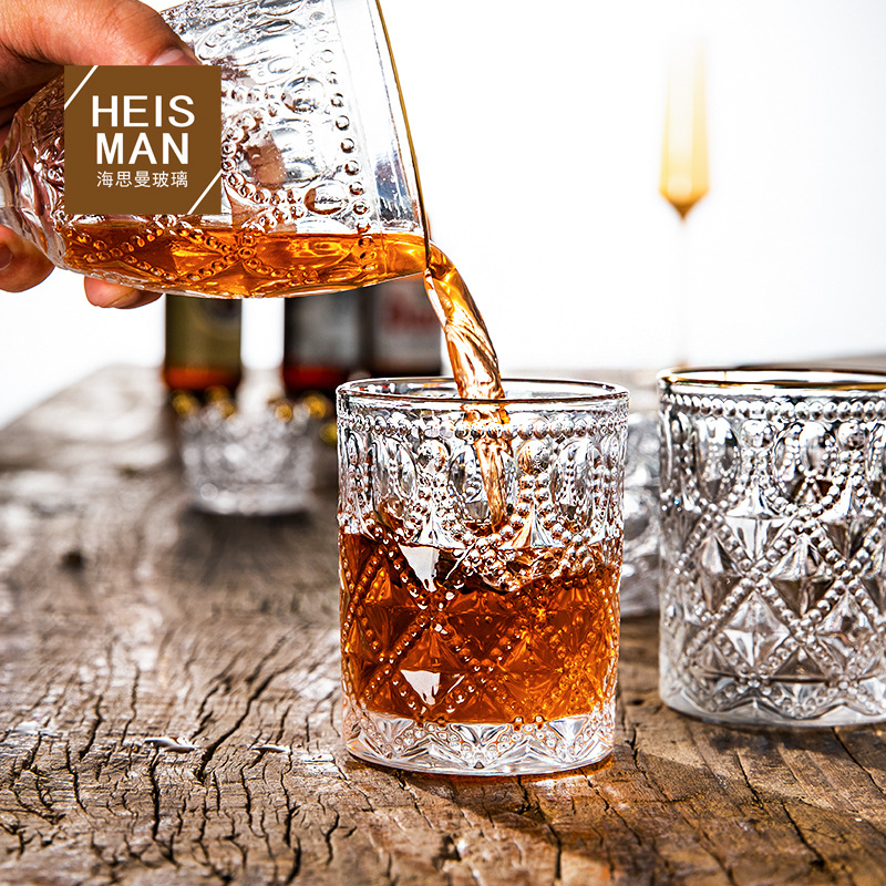 透かし彫りガラスカップ、菱形模様ジュースカップ、丸い金縁水カップ、脚付きワイングラス、うがい用カップ、耐熱性