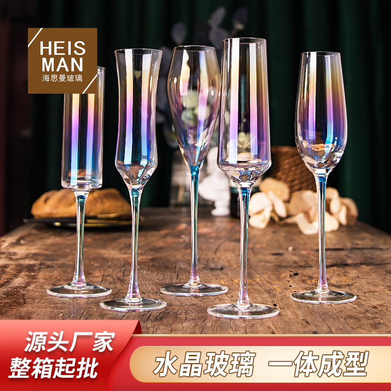 ヨーロッパスタイルのカラフルなクリスタルシャンパンカップクリエイティブinsカラー高脚グラスバーktvワイングラスカクテルカップ