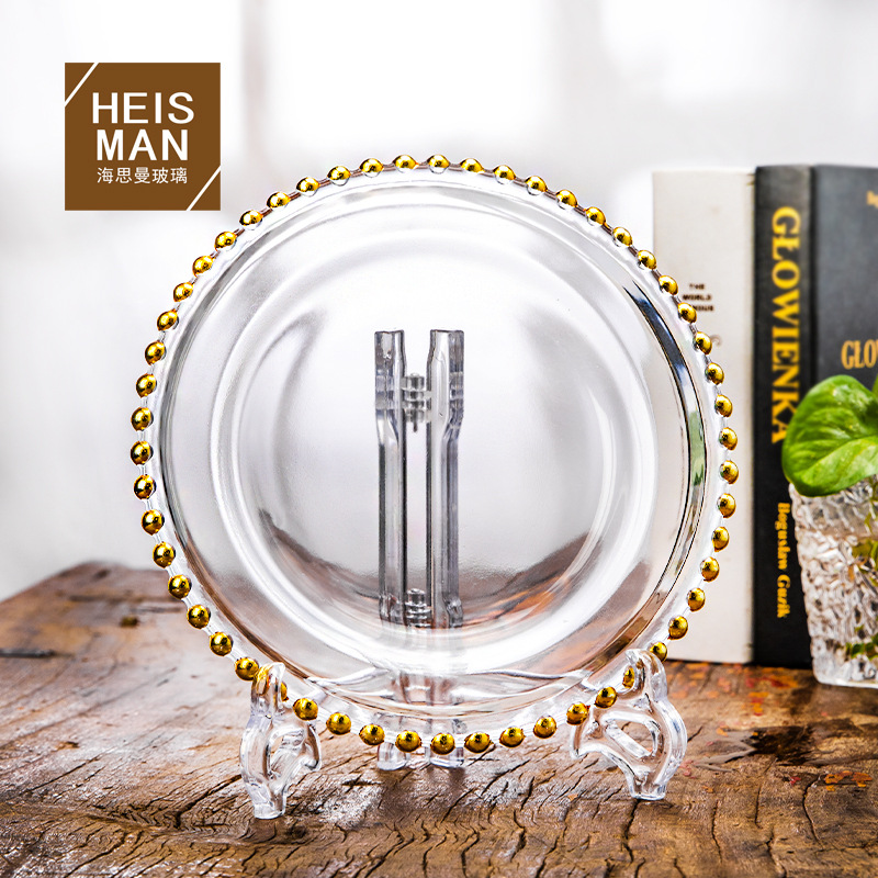 ヨーロッパ式水晶ガラス皿円形金珠洋食皿家庭用果物サラダ皿結婚祝い珠皿卸売り