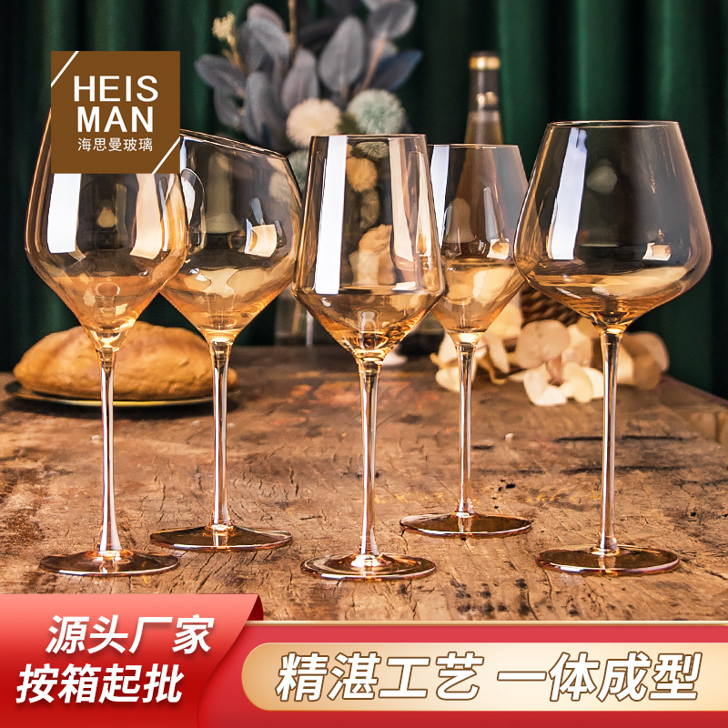 ヨーロッパ式水晶ガラス高足杯イオンメッキ琥珀ワイングラスレストラン高級ワイングラスセットワイングラス