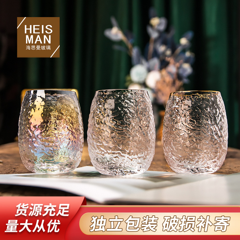 日本式ハンマーカラーグラス水晶恐竜卵カップ家庭用金辺耐熱カップジュースカップ冷飲カップ