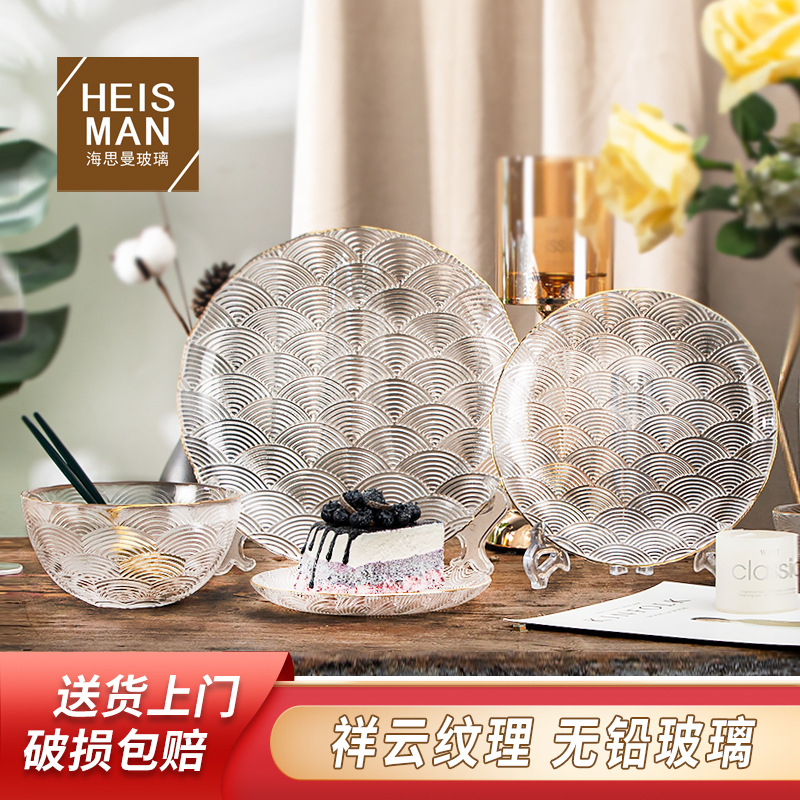 高颜値祥雲紋ガラスボウル皿果物サラダボウルネット赤水晶円盤金辺皿卸売り代発