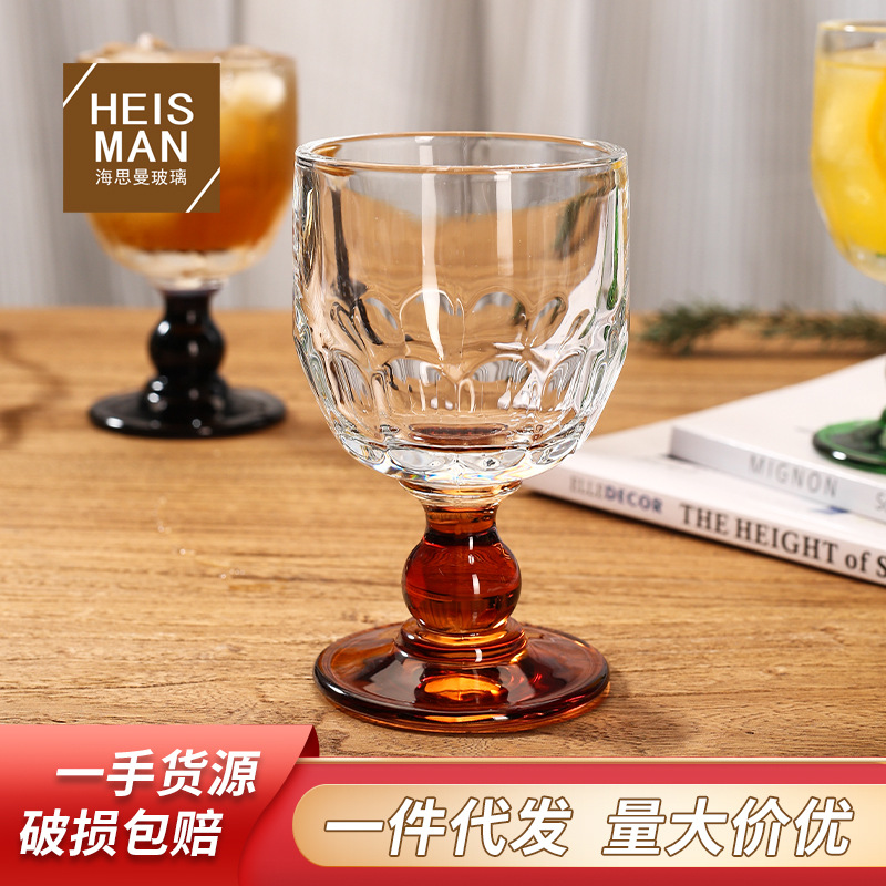 Haisman レトロカラービーズフルーツワイングラス中古ゴブレット冷たいドリンク小さなワイングラスガラス透明ワイングラス赤ワイングラス