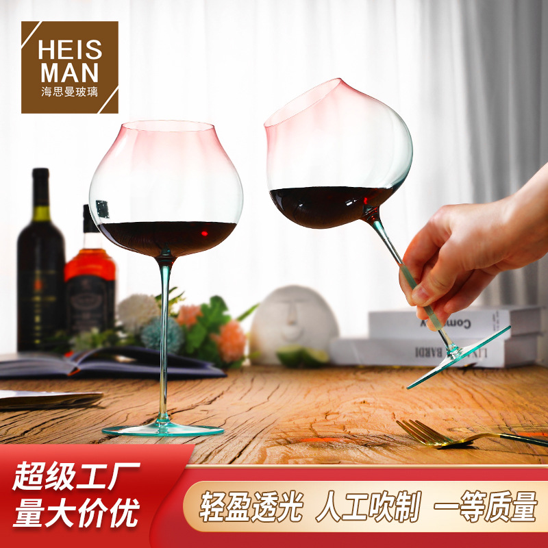 手吹きライト高級スタイルクリスタルガラスゴブレットハイエンドグラデーション手作りシームーンアイスブルーアップル赤ワイングラス