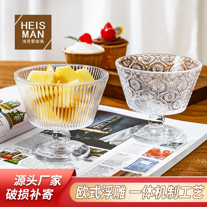 レトロなレリーフ太陽花ガラスボウルins風家庭用アイスクリームアイスクリームボウルヨーグルトオート麦朝食デザートボウル