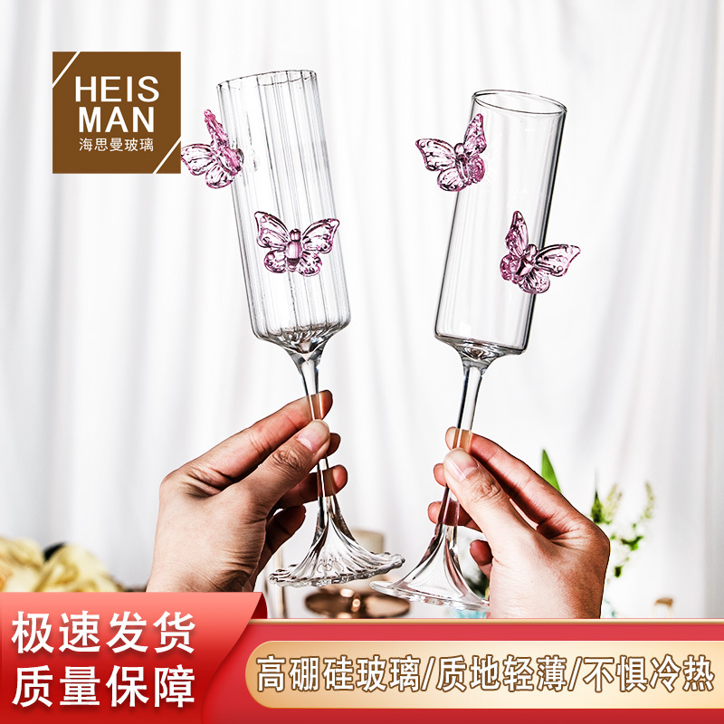 在庫あり、インスタイル高ホウケイ酸縦縞ワイングラス、結婚式の記念品、蝶の形をした背の高いワイングラス