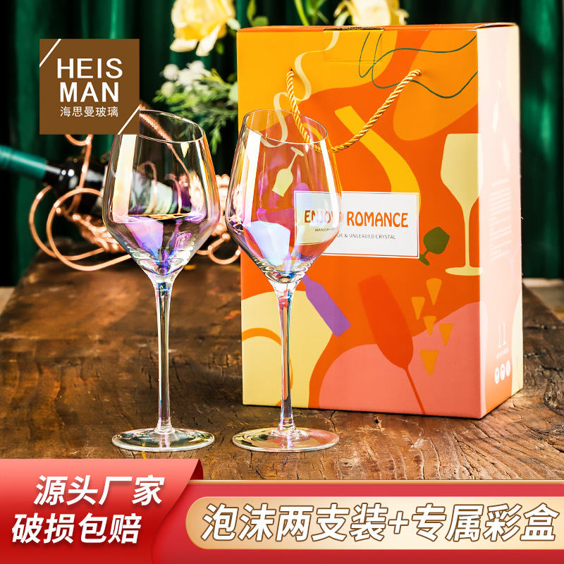 ヨーロッパ式水晶シャンパンカップメッキ七彩高足カップ灰皿琥珀甘いグラスギフトセット現物卸売り
