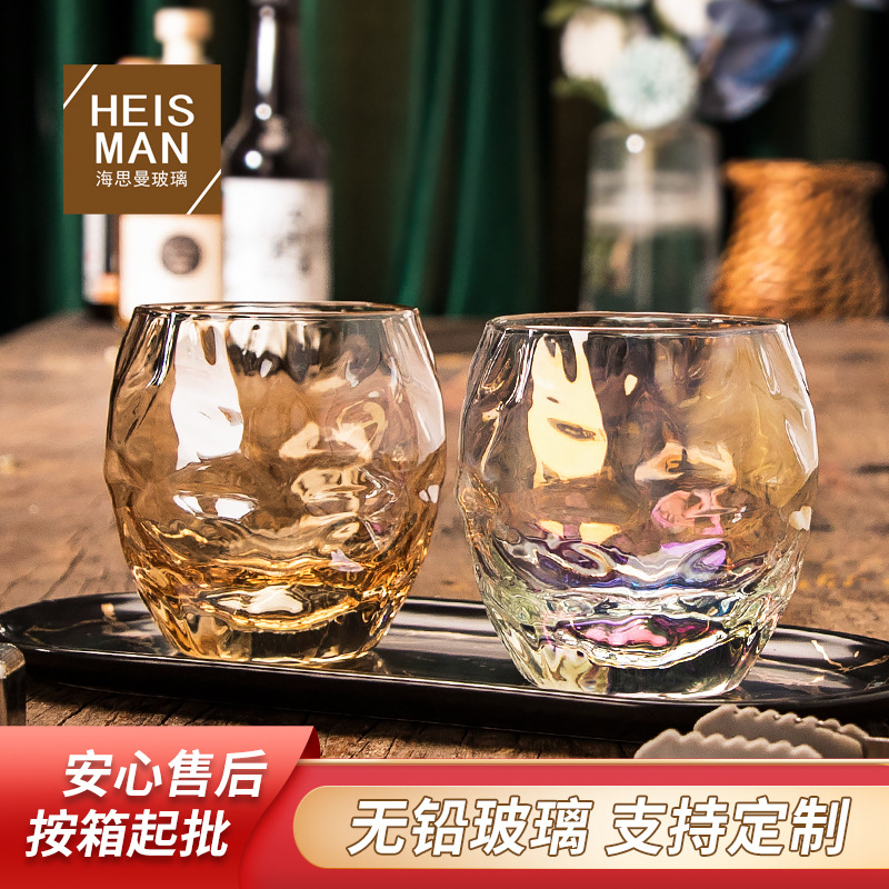 クリエイティブパイナップルウイスキーグラス異形ガラスカップ家庭用透明卵カップ金辺カップジュースカップ