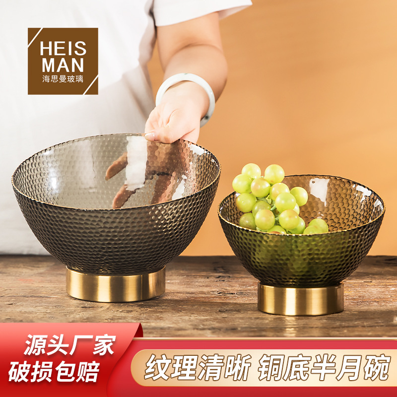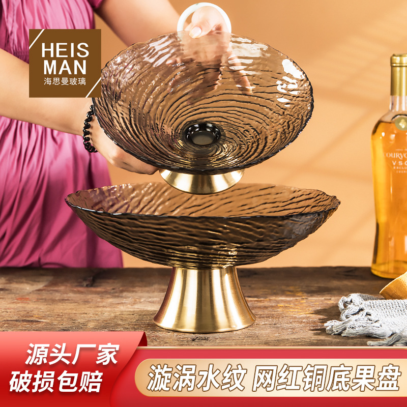 海思曼高級銅底ガラス果物皿大サイズのキャンディー皿のドライフルーツ皿のお茶の収納品の果物皿の卸売り