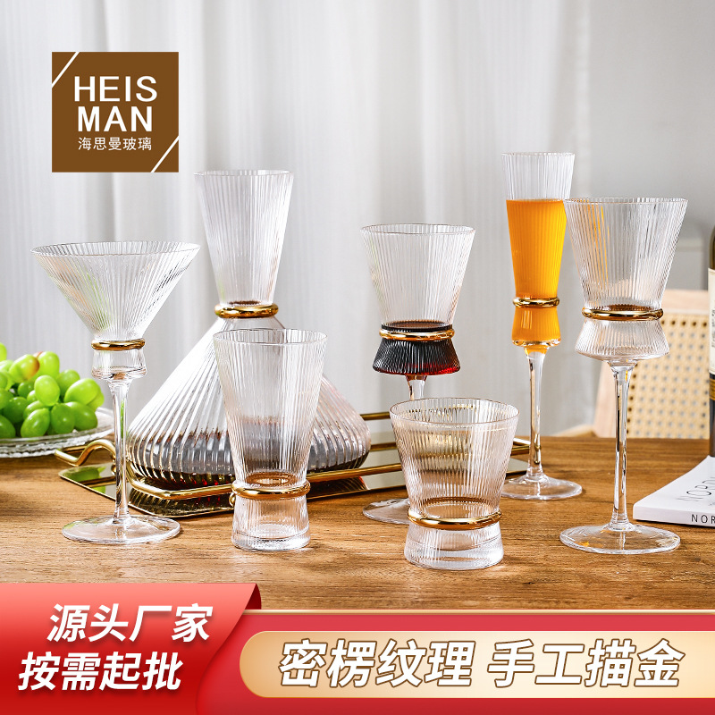 縦縞密稜高足杯水晶ガラス金帯赤ワインシャンパンカップ描金腰カクテルカップ