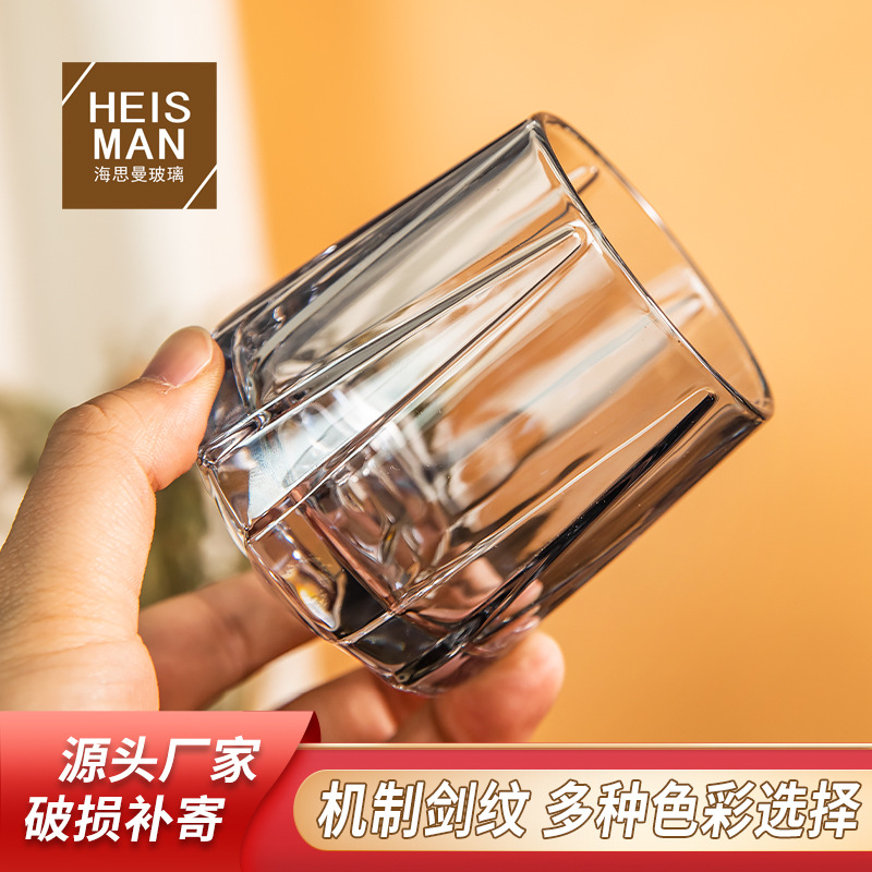 人工吹きユニバーサル環境に優しい垂直パターンカップ新鮮な超薄型ガラスコーヒーカップジュースカップミルクティーカップ