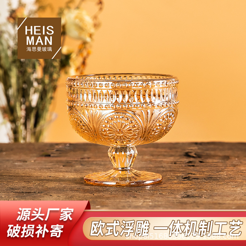 太陽花アイスクリームカップガラス高脚アイスクリームカップ創意ヨーグルトデザートカップネット赤アイスクリームボウルins風