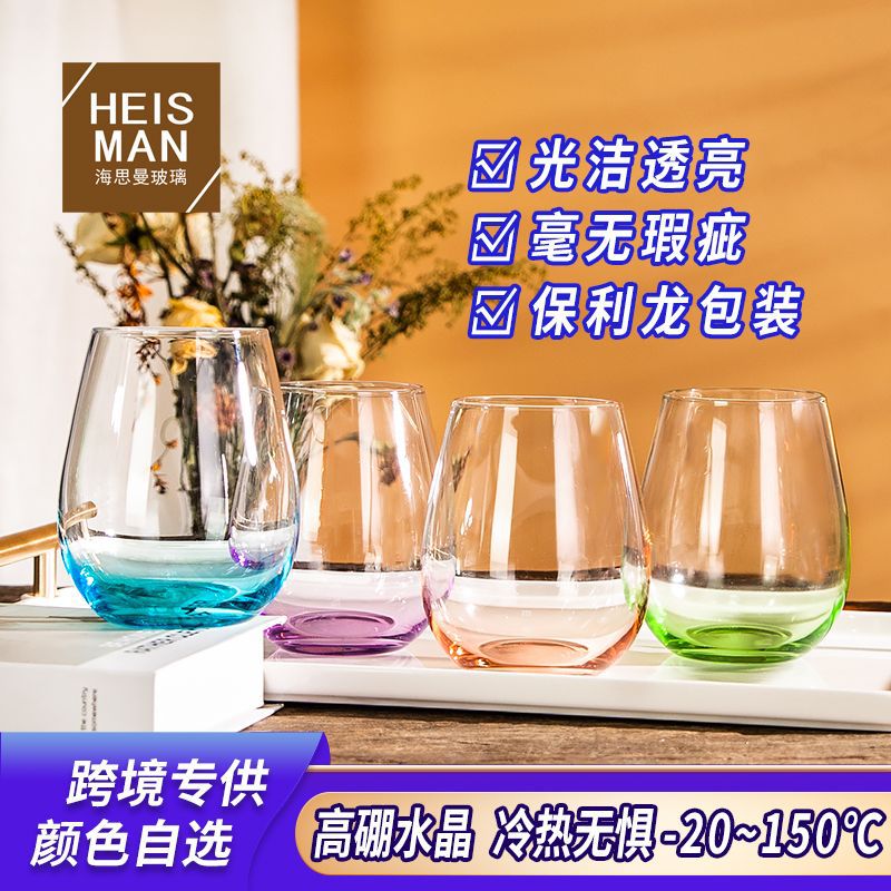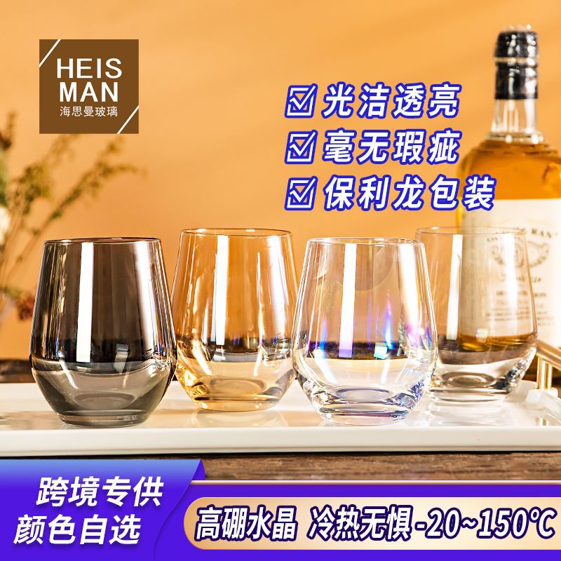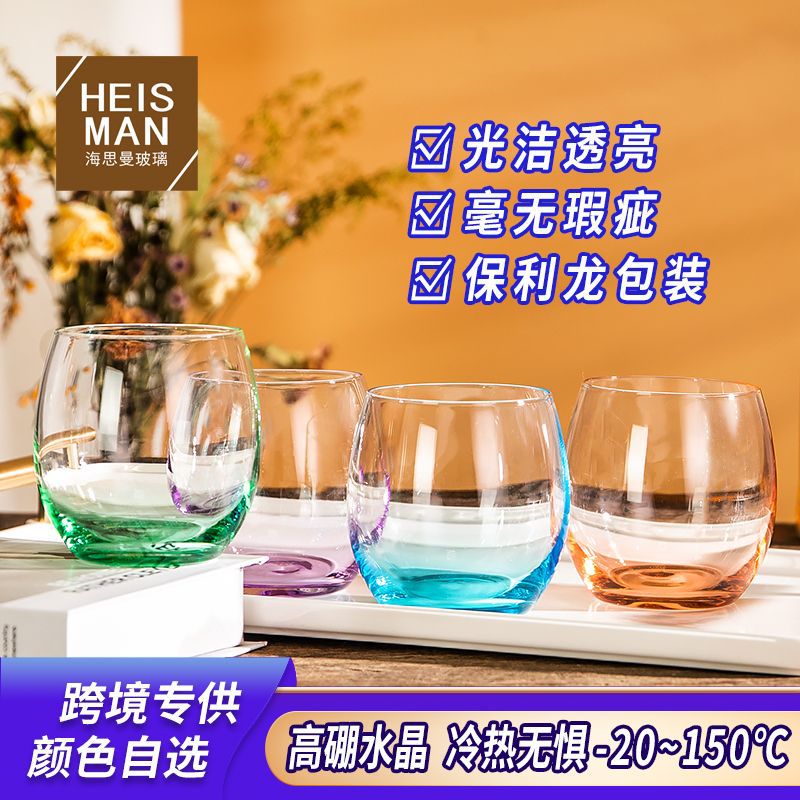 定制喷色玻璃杯透明水晶杯家用耐热大肚杯果汁杯喝水杯亚马逊热销