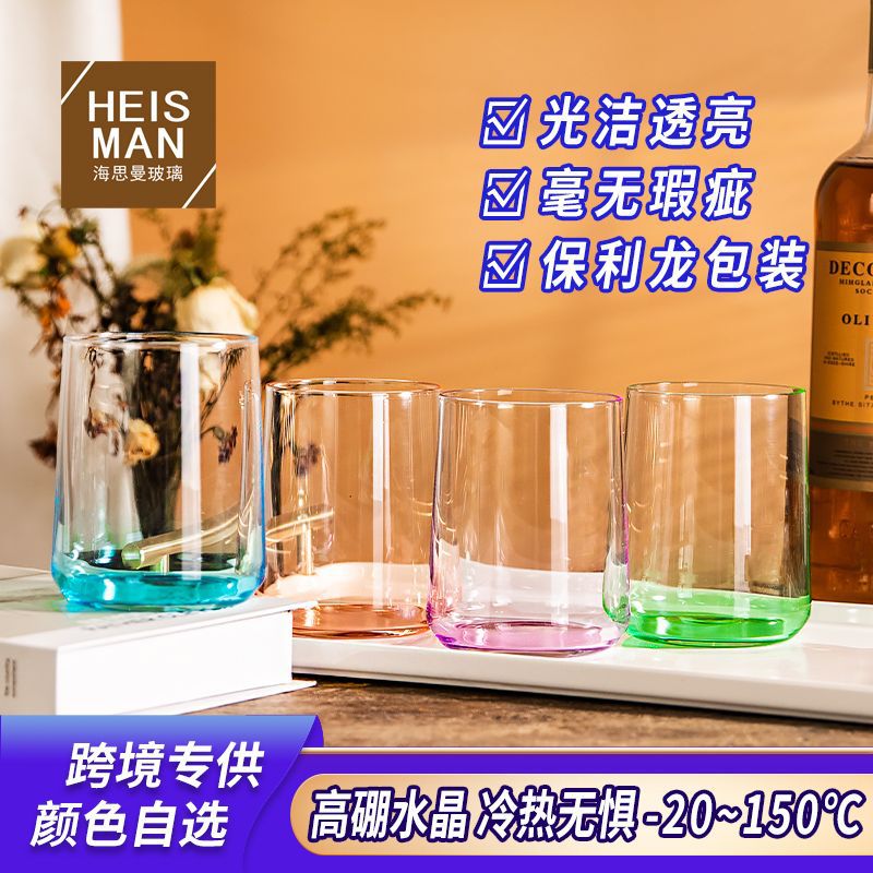 定制莫吉托玻璃水杯定制喷色水晶杯亚马逊彩色果汁杯威士忌杯漱口