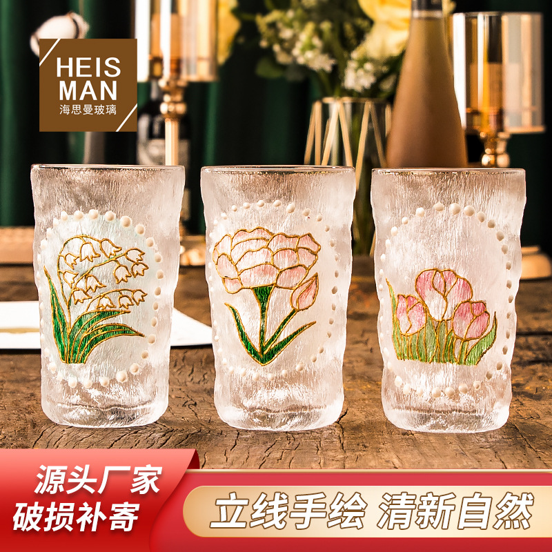 海思曼高颜値手描き氷河カップ立体花卉グラスネット赤フロストカップジュースカップ卸売り