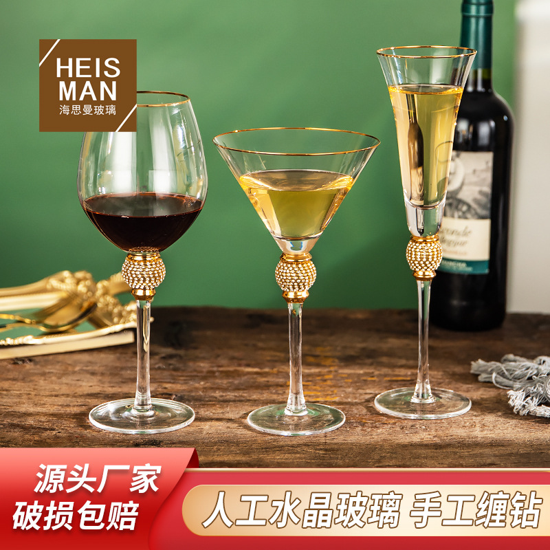 ヨーロッパ式のドリルの水晶の高足の杯の金の辺のワインの杯のダイヤモンドのワインの杯の高級なダイヤモンドのグラスのシャンパンの杯