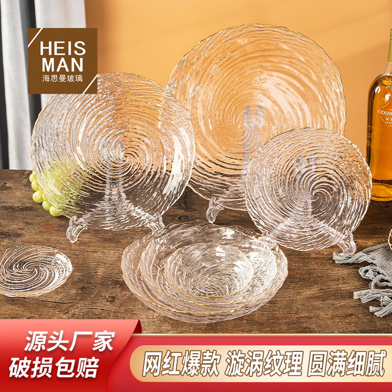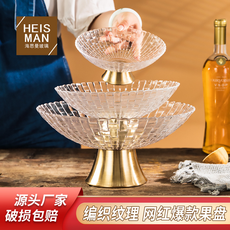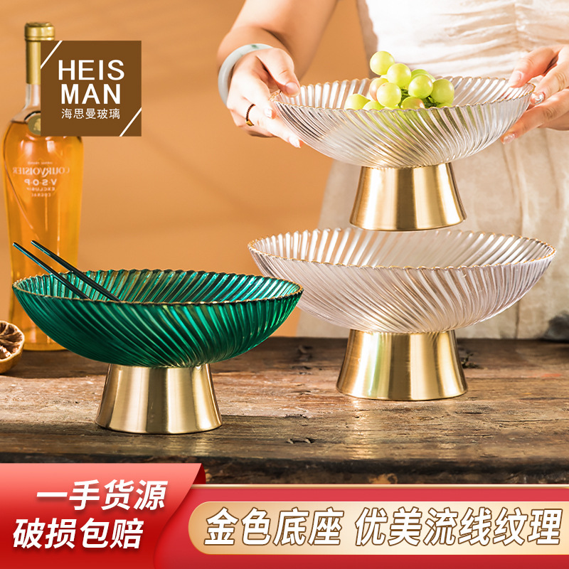 海思曼軽豪華高脚ガラス果盤高颜値金辺果物盤客間収納置物銅底糖果盤