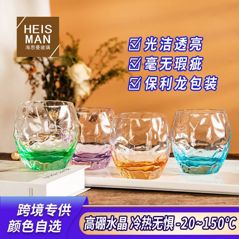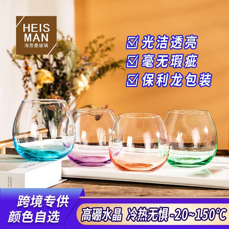 定制喷色透明玻璃杯人工吹制水晶杯酒店彩色漱口杯大肚杯跨境热销