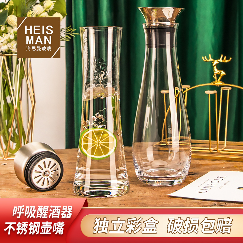 海思曼水晶ガラス冷水筒呼吸覚醒器ステンレス蓋付き家庭用冷水筒ギフトセット