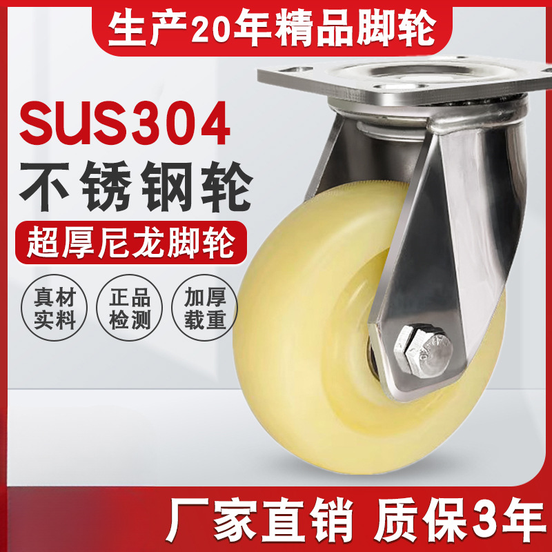 ヘビーデューティ 304 ステンレス鋼ナイロンキャスター 4 インチ 5 インチ 6inch 8inch 中型ステンレス鋼ユニバーサルホイールブレーキホイール