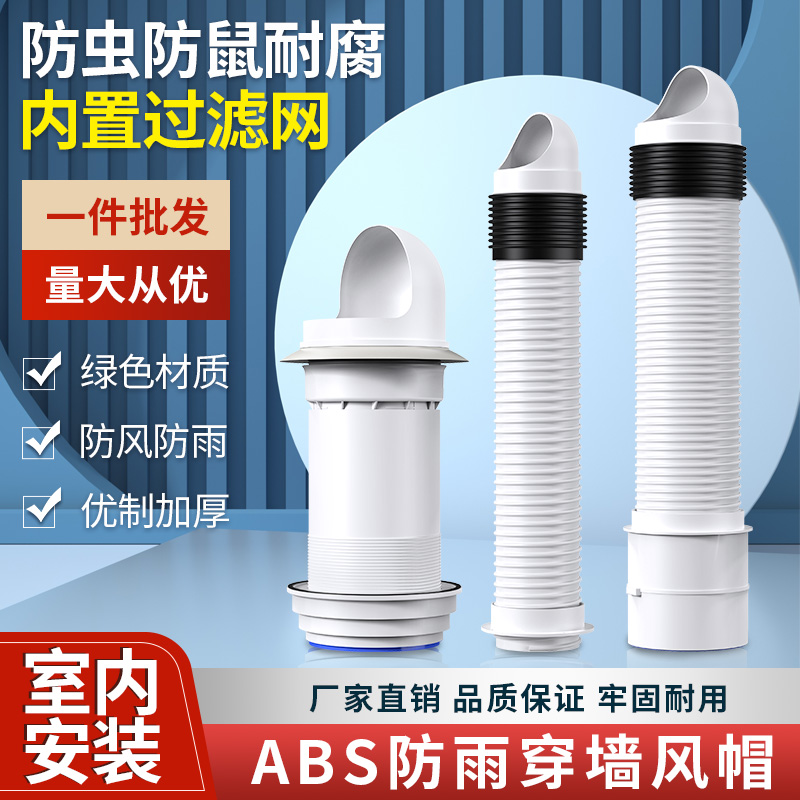 壁貫通フード一体型外壁排気口防風カバー浴室レンジフード屋内設置排気防雨キャップ