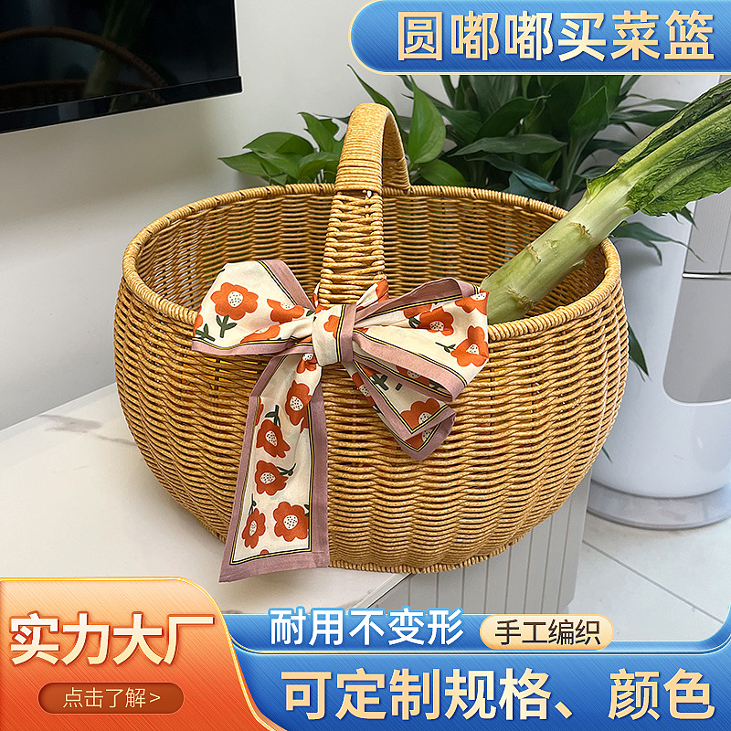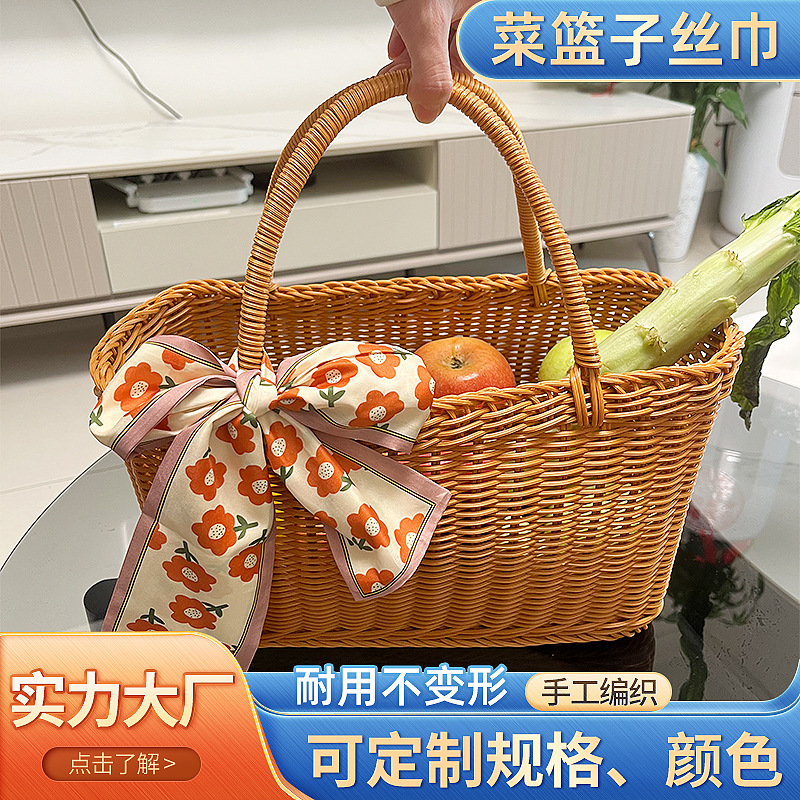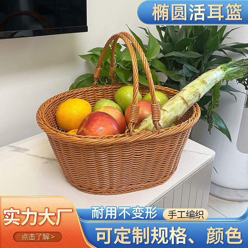 楕円形の生きた耳のかごは藤の手をまねてスーパーマーケットを編んで買い物して野菜のかごの野菜のかごの携帯用の家庭用の収納かごを買います。