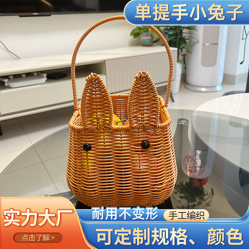藤の工芸の新型の円形の手提げのウサギのブタのかごの手作りの編み物のかごのおもちゃの野菜の果物の収納かご